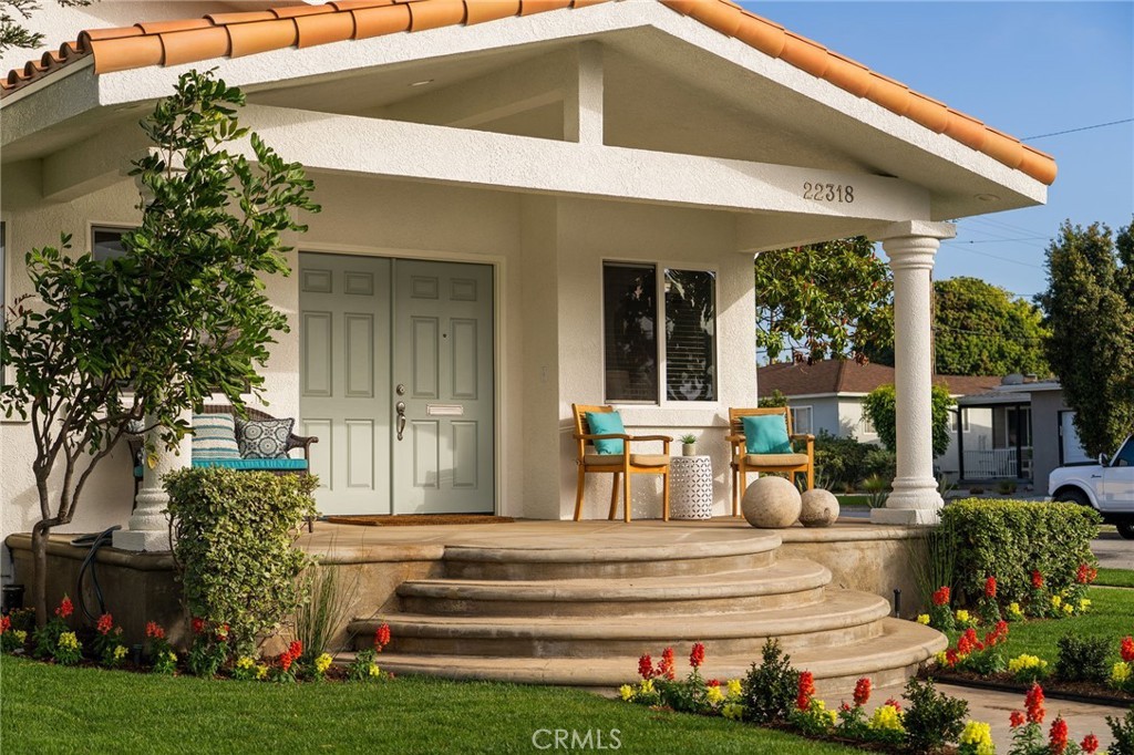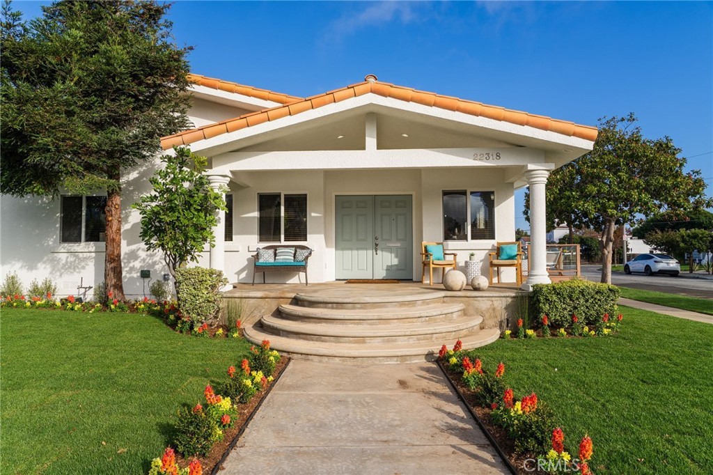 Charming and inviting, this single-level 3-bedroom, 3-bath home at 22318 Avis Court sits on an oversized corner lot within a cul-de-sac in Torrance. A welcoming front porch sets the tone for this warm and comfortable residence. Inside, the living area features a built-in media center and opens to a deck off the front of the home, perfect for morning coffee or evening sunsets. The kitchen includes a breakfast bar ideal for casual dining or conversation while cooking, along with ample cabinetry and workspace. The primary suite provides a relaxing retreat with a fireplace, dual-sink vanity, soaking tub, and separate shower, while two generously sized additional bedrooms offer flexibility for family, guests, or a home office. Outdoors, a generous backyard offers plenty of space for entertaining, outdoor dining, or simply enjoying the California sunshine. The three-car garage provides excellent storage and parking options, with potential to convert a portion or the entire space into an ADU, offering its own private entrance and small yard area—ideal for guests, extended family, or rental income opportunities. Located near top-rated schools, parks, and shopping, this home perfectly blends comfort, character, and classic South Bay charm.