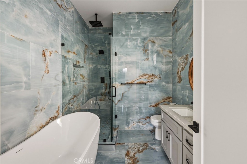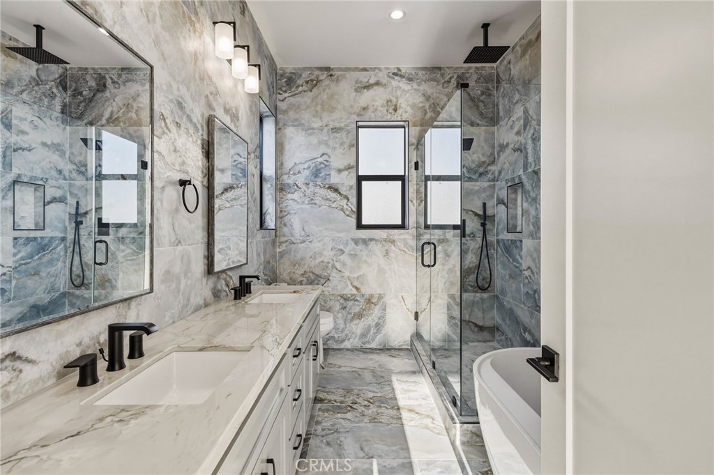 Brand new SINGLE FAMILY construction home in North Redondo Beach, this stunning 5-bedroom, 4-bath home offers a thoughtfully designed floor plan, elevated finishes, and seamless indoor-outdoor living. The main level features a bright and open layout with a spacious living room and a versatile room with a fireplace—ideal as a formal dining space or an additional family room—just off the kitchen. The chef’s kitchen features quartz countertops, sleek appliances, and ample cabinetry. A sliding door off the versatile room opens to a private side patio, creating an easy indoor-outdoor connection, while an additional grass yard provides extra outdoor space. Two bedrooms and a full bath with a shower/tub combo are conveniently located on the main level, along with the laundry area. Upstairs, you’ll find three bedrooms, including dual primary suites—each featuring walk-in closets and bathrooms with walk-in showers, soaking tubs, and dual vanities. A third upstairs bedroom also offers its own en-suite bathroom, providing comfort and privacy for family or guests. Additional highlights include beautiful quartz finishes throughout and central A/C. Ideally located in North Redondo Beach, this brand-new home combines modern style, flexible living spaces, and everyday functionality.